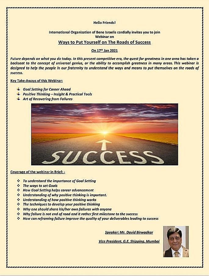 International Organization of Bene Israelis is inviting you to a scheduled Zoom webinar with Mr. David Birwadkar